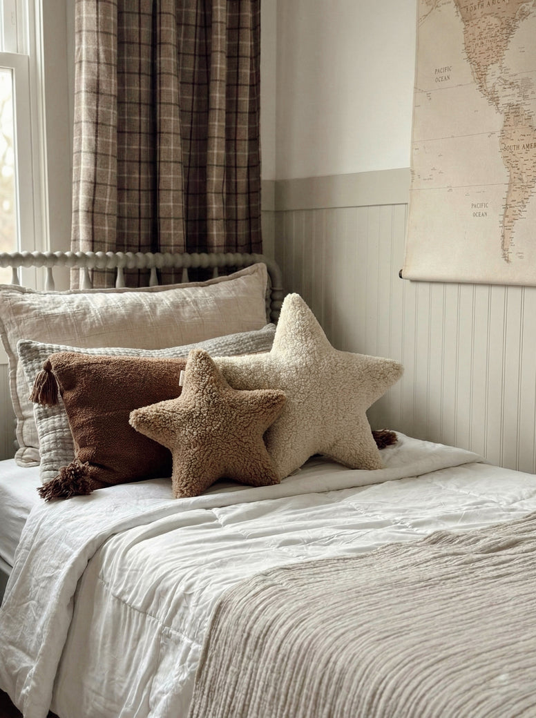 Stars Yıldız Çocuk ve Bebek Odası Yastık 2'li Ekru-A.Kahve